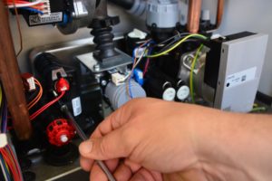 Ad impreziosire ulteriormente la caldaia ci sono alcune soluzione “smart” per il manutentore, quali i fianchetti del mantello smontabili, la valvola di caricamento del vaso di espansione in posizione frontale, un rubinetto a ghiera per lo svuotamento rapido, un nuovo filtro a rete sulla linea di adduzione dell’acqua. Peraltro, tutte le componenti idrauliche, inclusi i fermi dello scambiatore a piastre, sono facilmente accessibili in modo diretto dalla parte frontale della caldaia. La rivoluzione principale è però costituita dalla geometria esclusiva del gruppo di combustione e scambio termico, nella nuova configurazione Thermobalance™. Il gruppo termico è realizzato con ventilatore disassato, il che consente di accedere direttamente al bruciatore e allo scambiatore per la manutenzione senza dover smontare il ventilatore stesso. La porta bruciatore è autoraffreddata e non necessita del pannello isolante. Lo scambiatore inox monocircuito ad elevati passaggi, assolutamente fuori dagli standard degli altri “soliti noti”, rivela una notevole resistenza all’intasamento, un elevato scambio termico e – in caso di necessità – una manutenzione semplificata per il lavaggio chimico, non contenendo un doppio circuito.