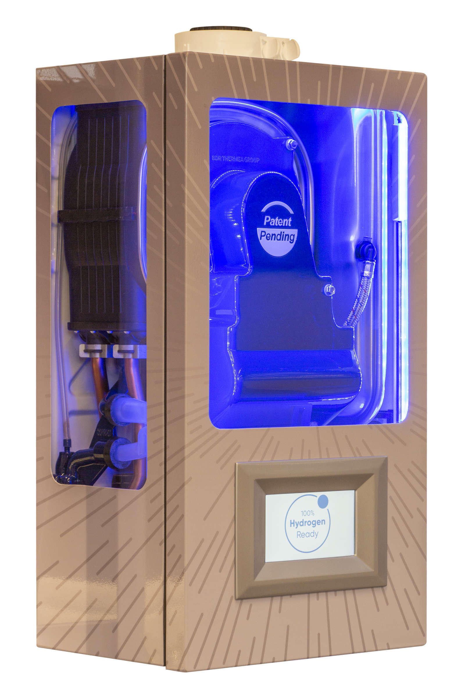 Nelle immagini, il prototipo della caldaia presentata a marzo a ISH 2019