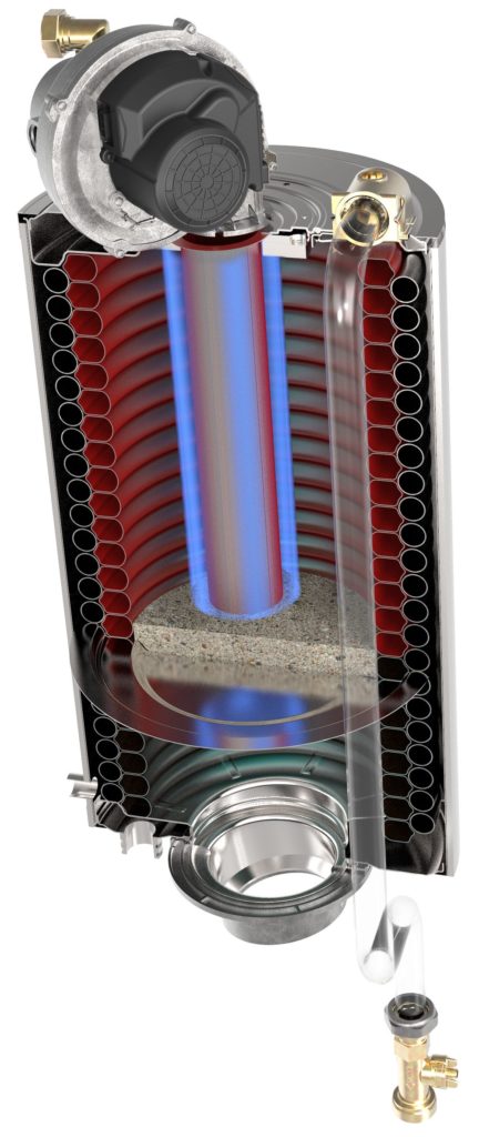 Riello Condexa Pro è una gamma di apparecchi di potenza progettati per garantire la massima modularità di installazione con il minimo ingombro. La gamma spazia da 35 a 131 kW in installazione singola e in cascata fino a 1121 kW, disponibile in vari allestimenti. Fino a 70 kW è prevista a bordo la pompa di circolazione ad alta prevalenza mentre i modelli di potenza maggiore possono essere equipaggiati (in utenza) con pompa o, nel caso di impianti a cascata, con valvola di intercettazione a 2 vie. Il controllo elettronico, grazie alla velocità di calcolo e agli algoritmi di gestione avanzati, permette una sofisticata gestione di macchina e di impianto. In caso di installazione in cascata, la logica managing-depending integrata garantisce l’interscambiabilità dei moduli e la continuità di servizio del sistema, anche durante le operazioni di manutenzione.