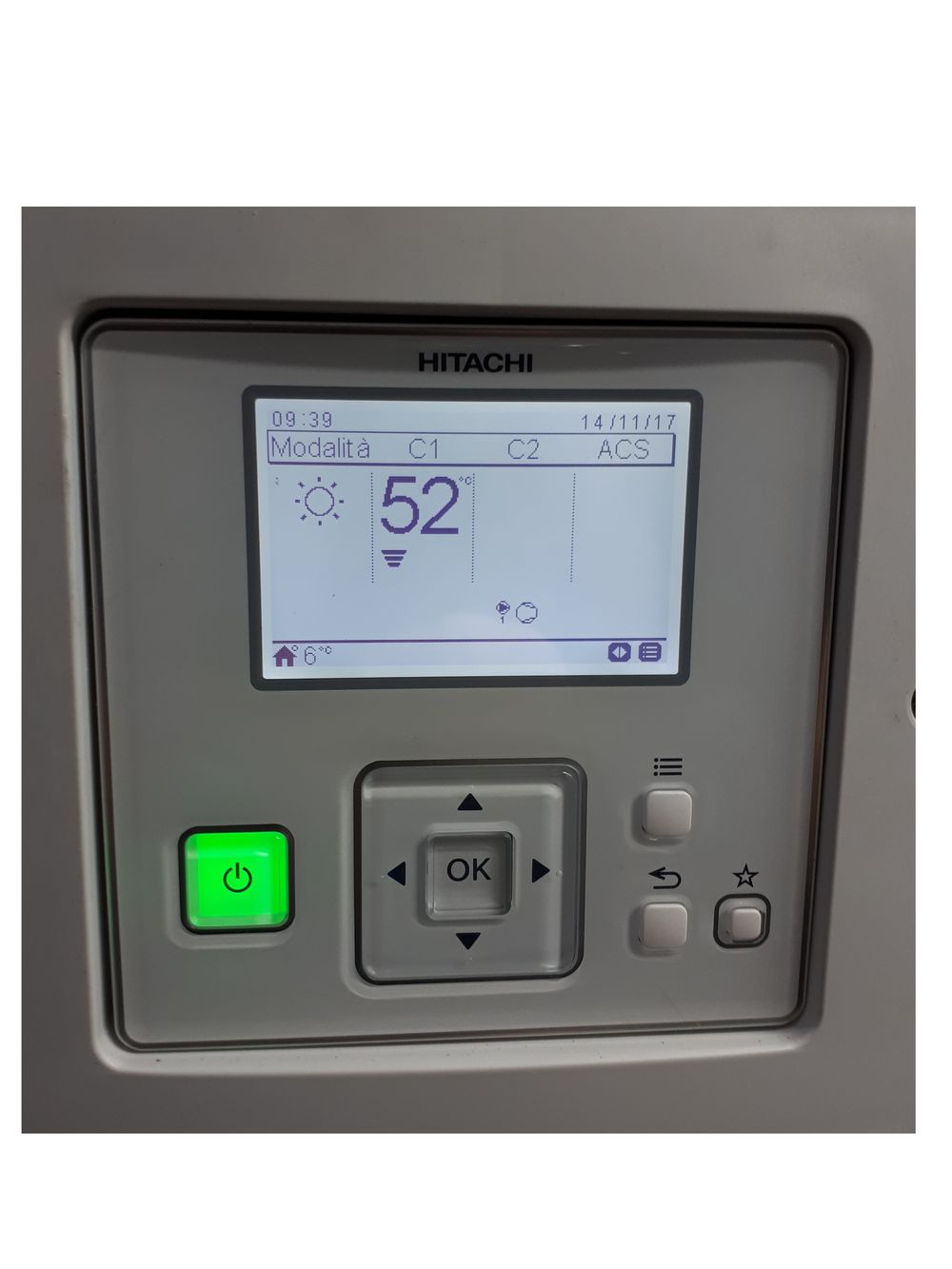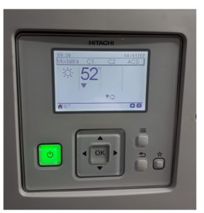 Essa riveste un ruolo importante nella progettazione e nello sviluppo, e sottolinea ancor più il deciso obiettivo di Hitachi nel voler costruire prodotti in grado di rispettare e salvaguardare l’ambiente. Il pannello LCD di controllo PC ARFHE, fornito a corredo con il sistema Yutaki S, è facilmente remotizzabile: può essere installato in ambiente per mezzo di semplice doppino 2 x 0,75 mm2 fino ad una distanza di 100 metri. Questo non solo è il comando del sistema, ma può essere facilmente programmato come cronotermostato ambiente. Tale impostazione offre quindi il vantaggio di un controllo climatico intelligente, non solo relativo alla temperatura esterna, ma anche in base alla temperatura ambiente interna, aumentando l’efficienza stagionale del 4%. Per comodità dell’utente, nonostante sia facile impostare il cambio di modalità dal pannello LCD PC ARFHE, è stato inoltre predisposto il cambio automatico della modalità da Caldo a Freddo semplicemente tramite un contatto pulito programmato per tale operatività.