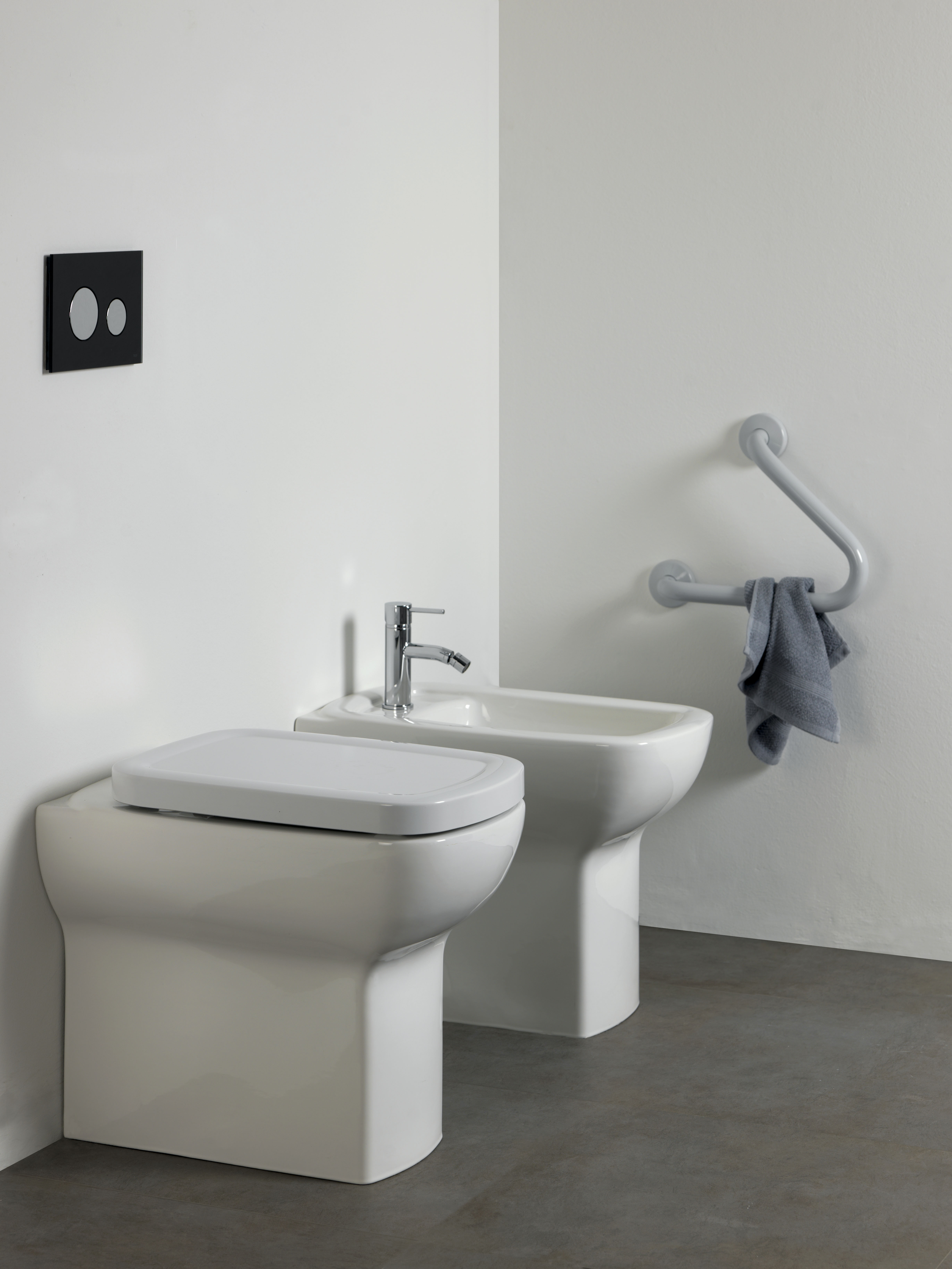 Composta da vaso sanitario e bidet, entrambi per installazione a pavimento, la collezione di sanitari Acca48 è adatta a ogni utente, senza distinzione di età, sesso o limiti fisici di altra natura. Lo stile moderno e minimale e le caratteristiche, come l’ampiezza dei bacini e le superfici di appoggio generose e raccordate rendono questi sanitari adatti per ogni tipo di ambiente e, particolarmente per le persone anziane o diversamente abili.