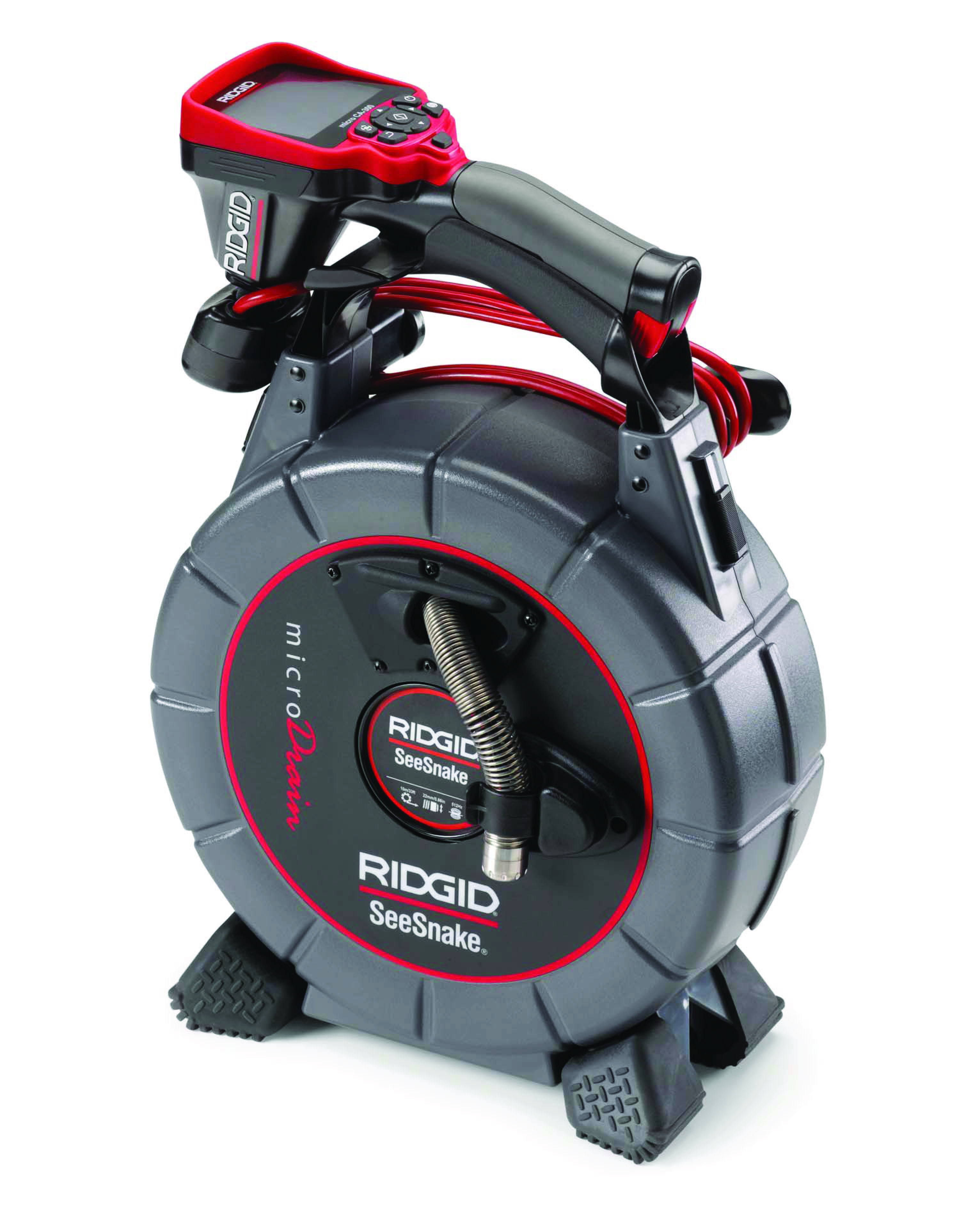 Lo strumento si alimenta attraverso il monitor al quale è connesso. È semplice da utilizzare e ha un’elevata qualità dell’immagine. Il cavo di spinta robusto e flessibile permette di superare curve multiple e sifoni a 90° di 40mm in su senza la necessità di smontaggio degli stessi. Il suo tamburo chiuso impedisce che sporco e detriti imbrattino il luogo di lavoro. Nella versione con cavo da 20 m, il microDrain è corredato di una testa telecamera da 22mm a colori con un trasmettitore da 512 HZ posizionato nella testa della telecamera ed un raggio di azione di circa 3 m di distanza. Il peso limitato a 3.9 chilogrammi permette di trasportarlo facilmente con qualsiasi automezzo; il trasporto è inoltre agevolato dai piedini antiscivolo e dalla una maniglia. Il microDrain è versatile e può essere utilizzato sia con la telecamera CA300, sia con qualsiasi monitor SeeSnake, sostituendo semplicemente il cavo di interconnessione.