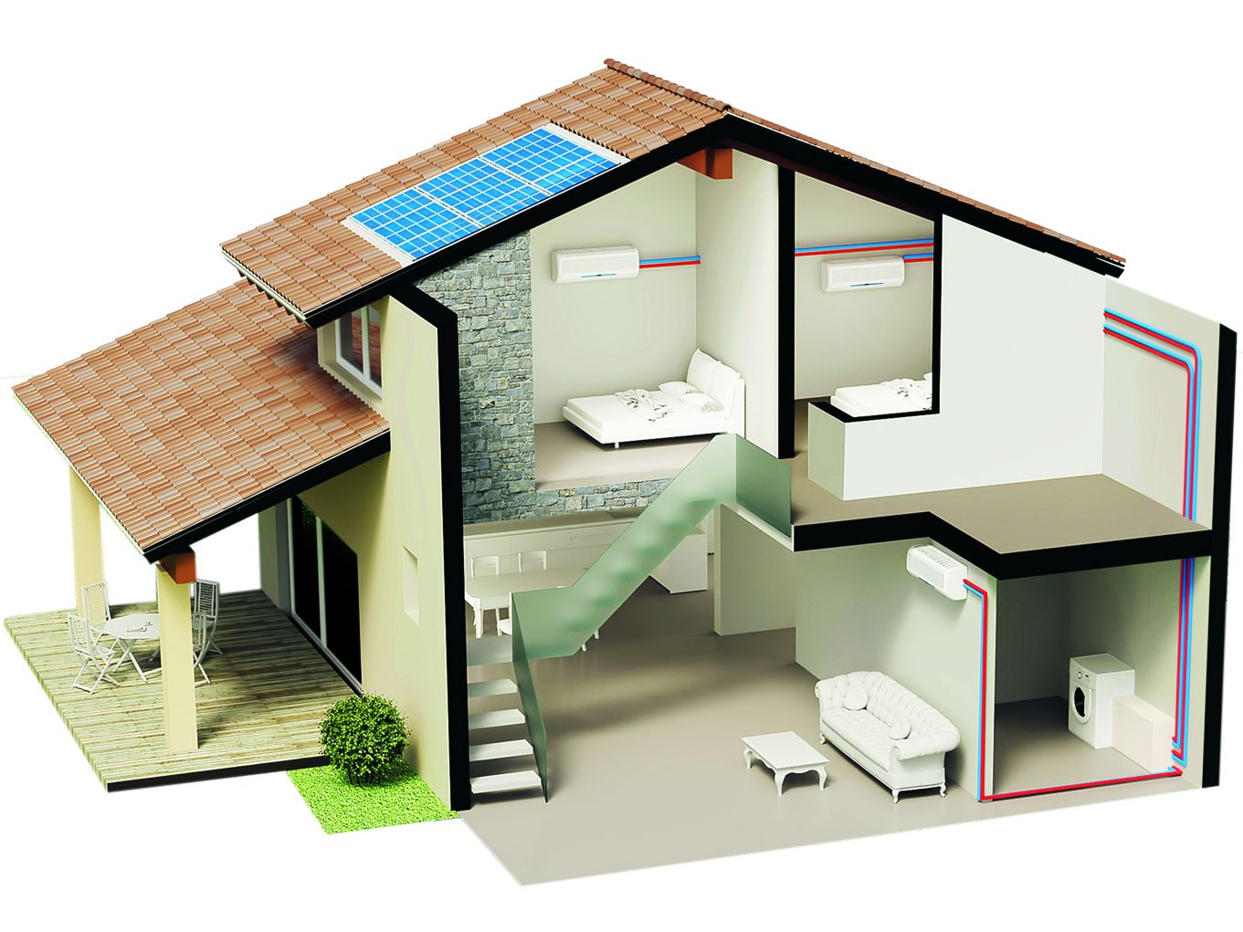 I vantaggi di questo tipo di installazione sono molteplici: viene rispettato il decoro architettonico senza scendere a compromessi in ambito di qualità e comfort abitativo e, in secondo luogo, le unità sono nascoste alla vista anche internamente così, occupando poco spazio, non risultano invasive.