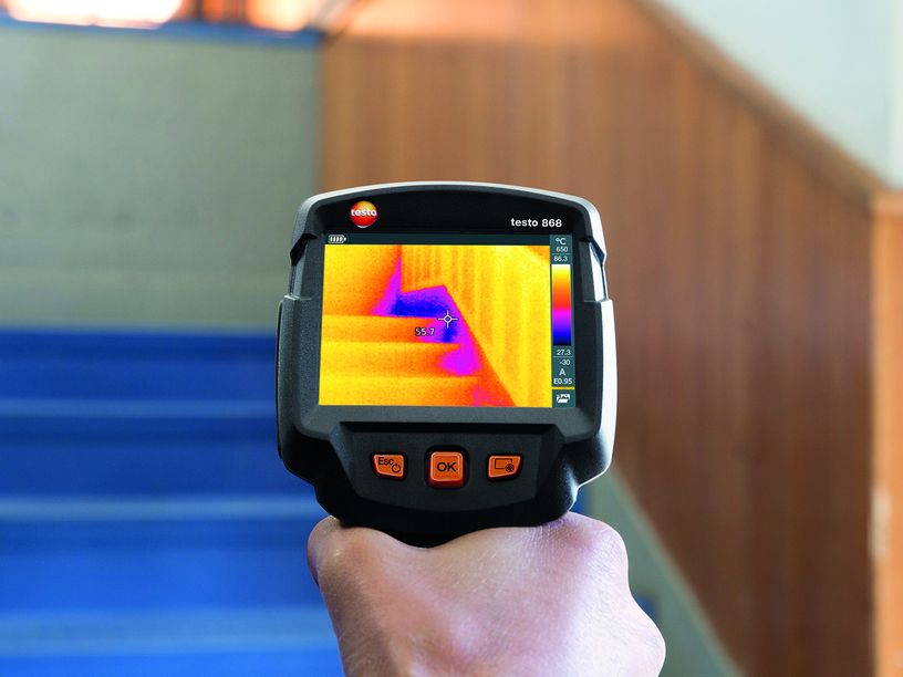 La termocamera smart proposta da Testo è uno strumento di diagnosi ideale per localizzare danni e perdite negli impianti senza danneggiare i locali