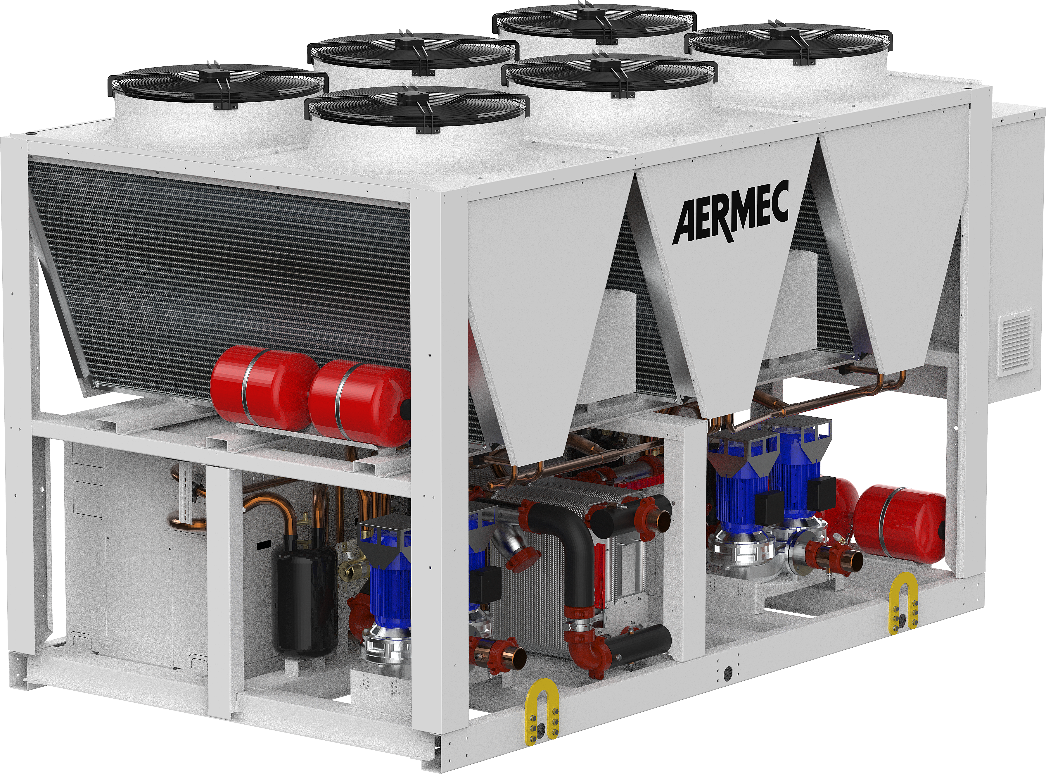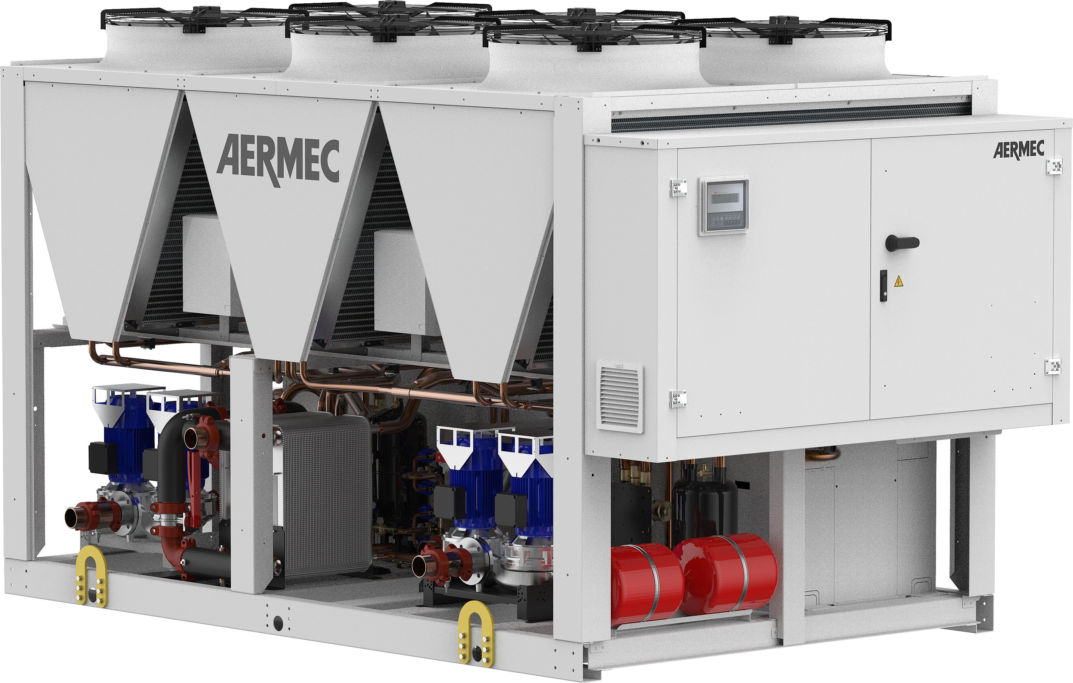 AERMEC presenta la nuova serie NRP, l’unità polivalente per la produzione contemporanea e indipendente di acqua calda e fredda ora con batterie V-Block Micro Channel.