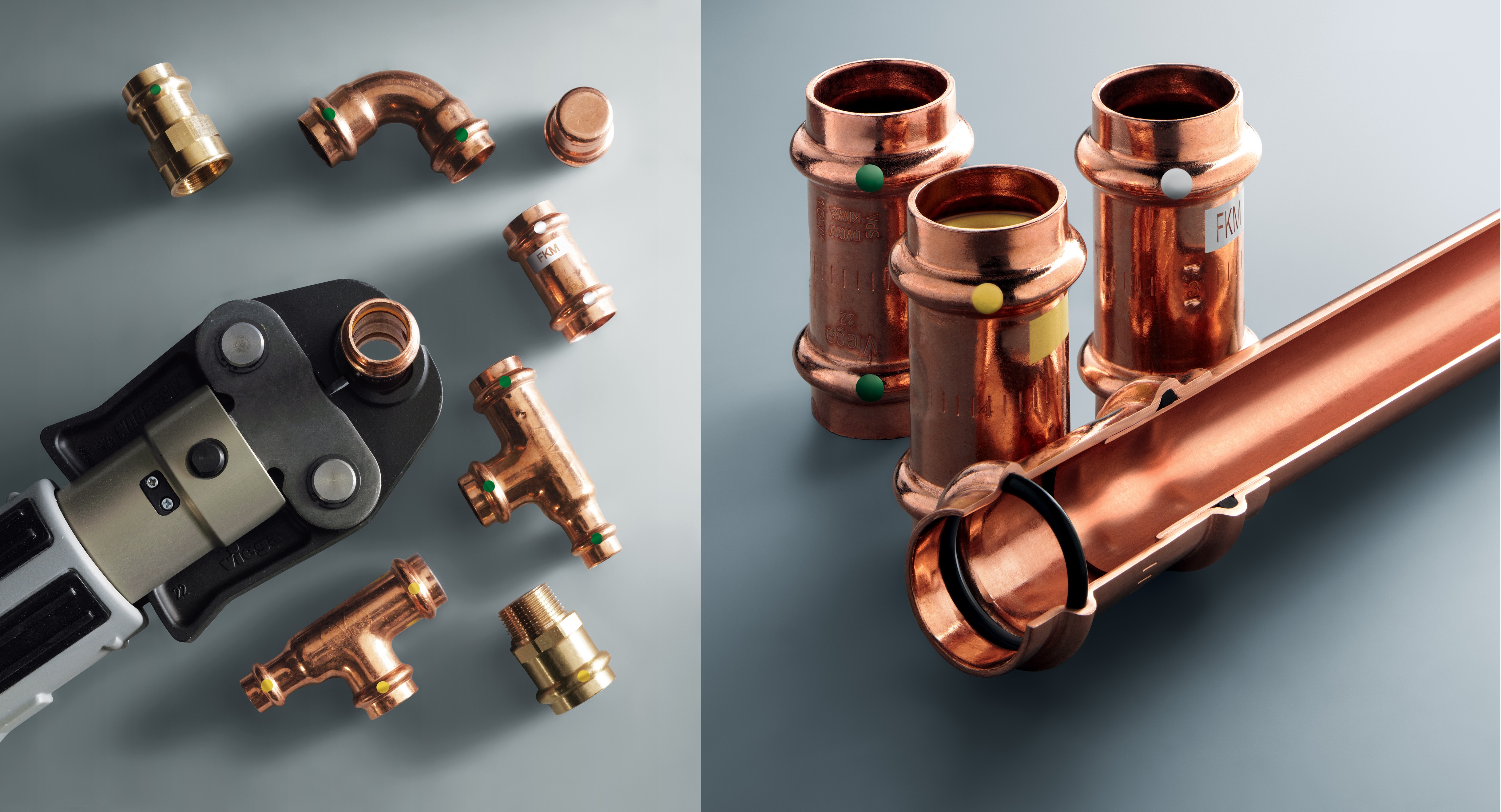 Viega Profipress è un sistema di raccordi a pressare di rame e di bronzo per gli impianti di acqua sanitaria, per il riscaldamento, l’allacciamento di radiatori. Le sue varianti Profipress G e Profipress S – rispettivamente per impianti a gas e solare termico – costituiscono la risposta alla domanda di sicurezza e durevolezza nel tempo.
