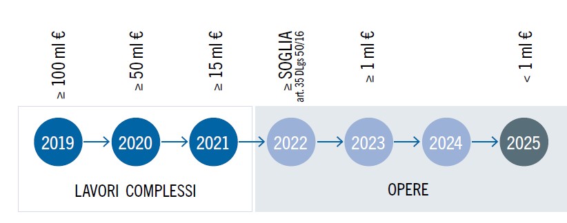 Invariato fino al 2021, da quest’anno sono state introdotte delle modifiche, con l’uscita del Baratono 2, DM 312/21 in cui deca­de il riferimento a “qualsiasi opera” inferiore al milione di euro. Questo perché per molti enti della PA spesso gli appalti riguarda­no opere di piccole e medie dimensioni e un singolo tecnico ne segue vari contemporaneamente, per cui al momento sarebbe impraticabile introdurre un sistema digitale come quello delinea­to nel BIM.