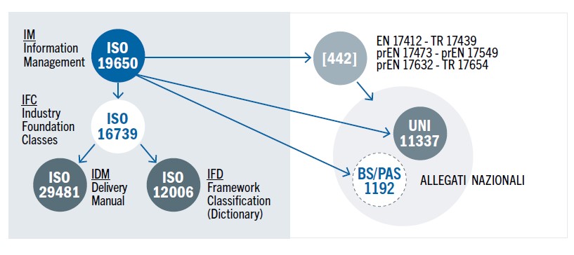 Se in U.K., ad esempio, viene applicata la ISO 19650 e tutto quanto non vi è ricompreso è incluso nell’allegato nazionale parte II, che quindi vale per loro e non in tutto il mondo, in Italia teniamo va­lide tutte le Fasi Informative del Processo Edilizio Digitale – UNI 11337 e via via le matchiamo con la 19650 senza mai andare in contrasto, così da agevolare l’operatore nell’applicazione della norma internazionale.