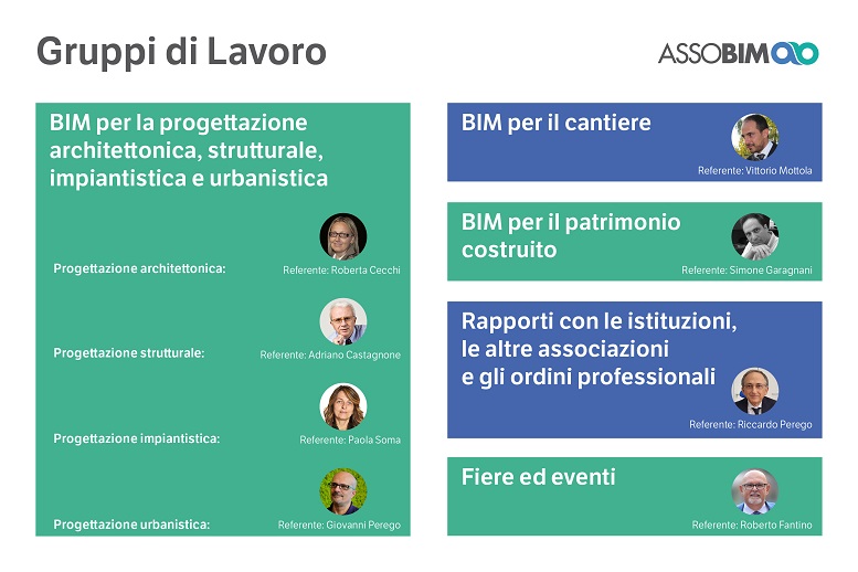 «Anche con questa nuova impostazione, i Gruppi di Lavoro si confermano essere un organo importante dell’Associazione, poiché declinano nei vari ambiti applicativi tutti i temi del BIM e della digitalizzazione della filiera. I soci che ne fanno parte svolgono tutta una serie di attività, con lo scopo di proseguire lo sviluppo di alcune iniziative già avviate, ma anche di aprire nuovi filoni di ricerca e collaborazione, di portare avanti sinergie e progetti a medio-lungo termine, dialogando con diverse realtà e con le Istituzioni» – commenta Adriano Castagnone, Presidente di ASSOBIM – «Impostando il lavoro in modo ancora più efficiente, continueremo a impegnarci nella promozione del BIM e, più in generale, nello sviluppo della digitalizzazione delle costruzioni nel nostro Paese».
