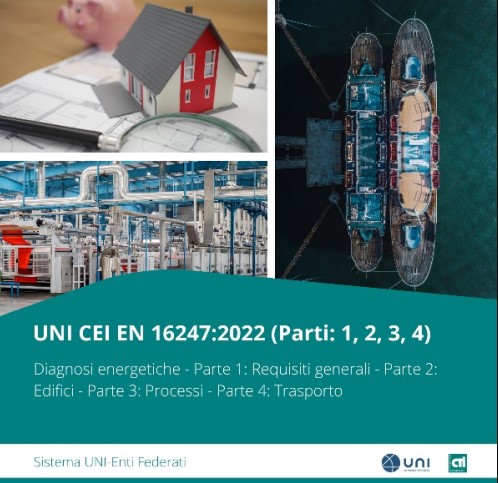 Recentemente pubblicate a catalogo le nuove UNI CEI EN 16247 (Parti: 1, 2, 3 e 4) che illustrano le procedure per l’esecuzione di una diagnosi energetica, che sia di un edificio, di un processo produttivo o di una flotta di trasporto.