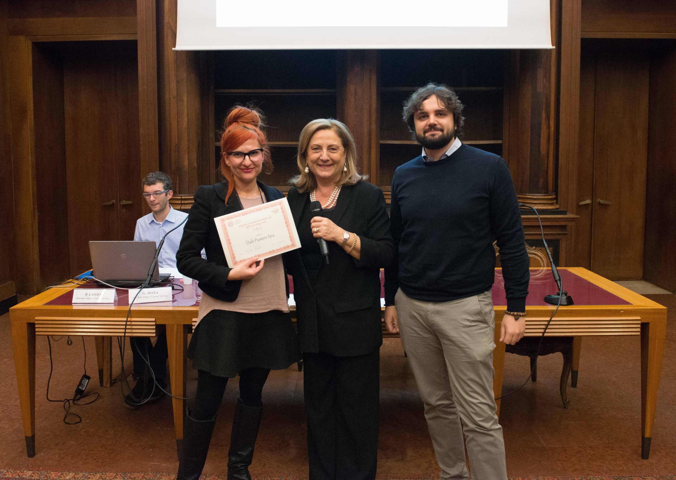 Alla cerimonia di premiazione, tenutasi nella storica e suggestiva cornice dell’Archivio Antico di Palazzo Bo a Padova, sono intervenuti per DAB Pumps Debora Guarino, Group HR Specialist, e Matteo Distratis, Group HR Officers e Coordinatore Stage Tirocini, chiamati a ritirare gli attestati dei due prestigiosi riconoscimenti.