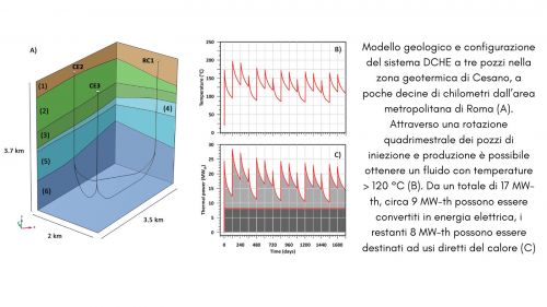 Grazie alla circolazione artificiale non avviene alcun prelievo di fluidi geotermici dal sottosuolo. Questa caratteristica riduce il rischio minerario e l’impatto ambientale. I risultati di una serie di simulazioni numeriche mostrano che la produzione di fluidi con temperature e portate sufficientemente elevate, indispensabili per applicazioni reali, è sostenibile.