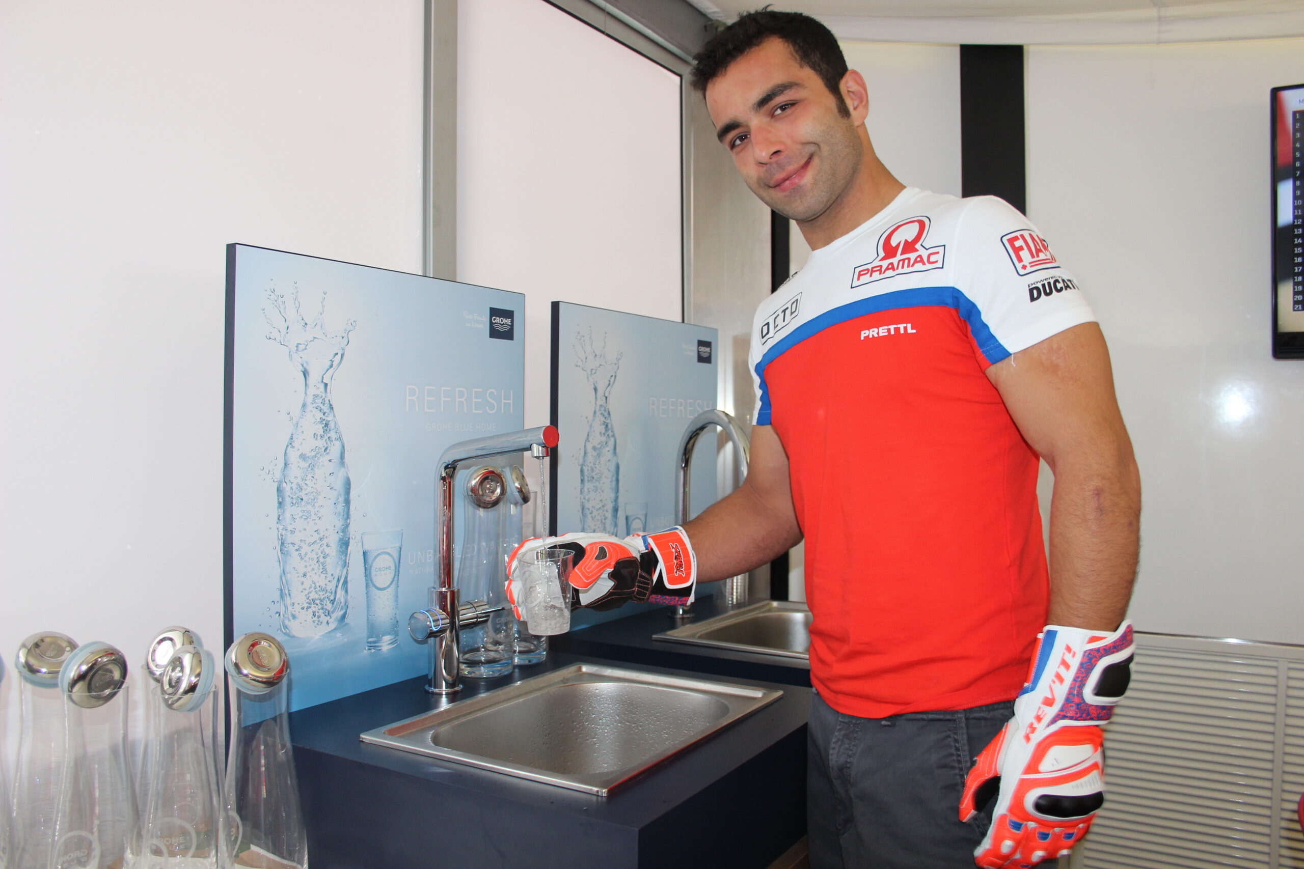 Per la prima volta, nelle aree hospitality di Octo Pramac Racing è stato possibile dissetarsi con acqua pura, fresca e filtrata direttamente dal rubinetto. Nelle lounge del Team toscano sono stati installati i sistemi di filtrazione GROHE Blue Home che hanno dissetato gli ospiti e lo staff con acqua filtrata naturale, leggermente frizzante e frizzante.