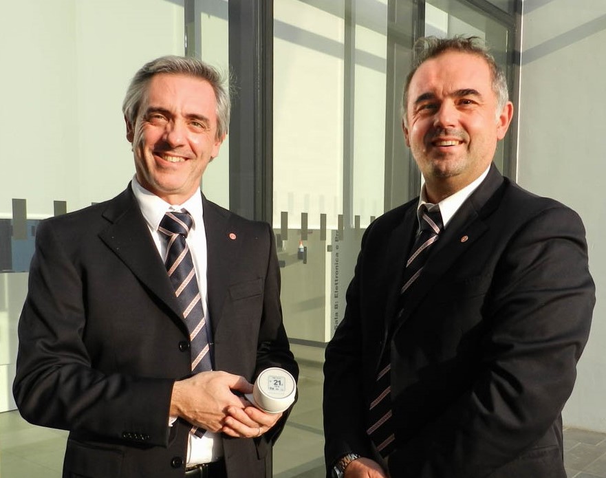 - 1° immagine: il Direttore Innovazione Tecnologica Immergas Cristian Zambrelli e il Direttore Marketing Operativo & Comunicazione Ettore Bergamaschi con il cronotermostato Smartech Plus. (foto antecedente la pandemia COVID 19)