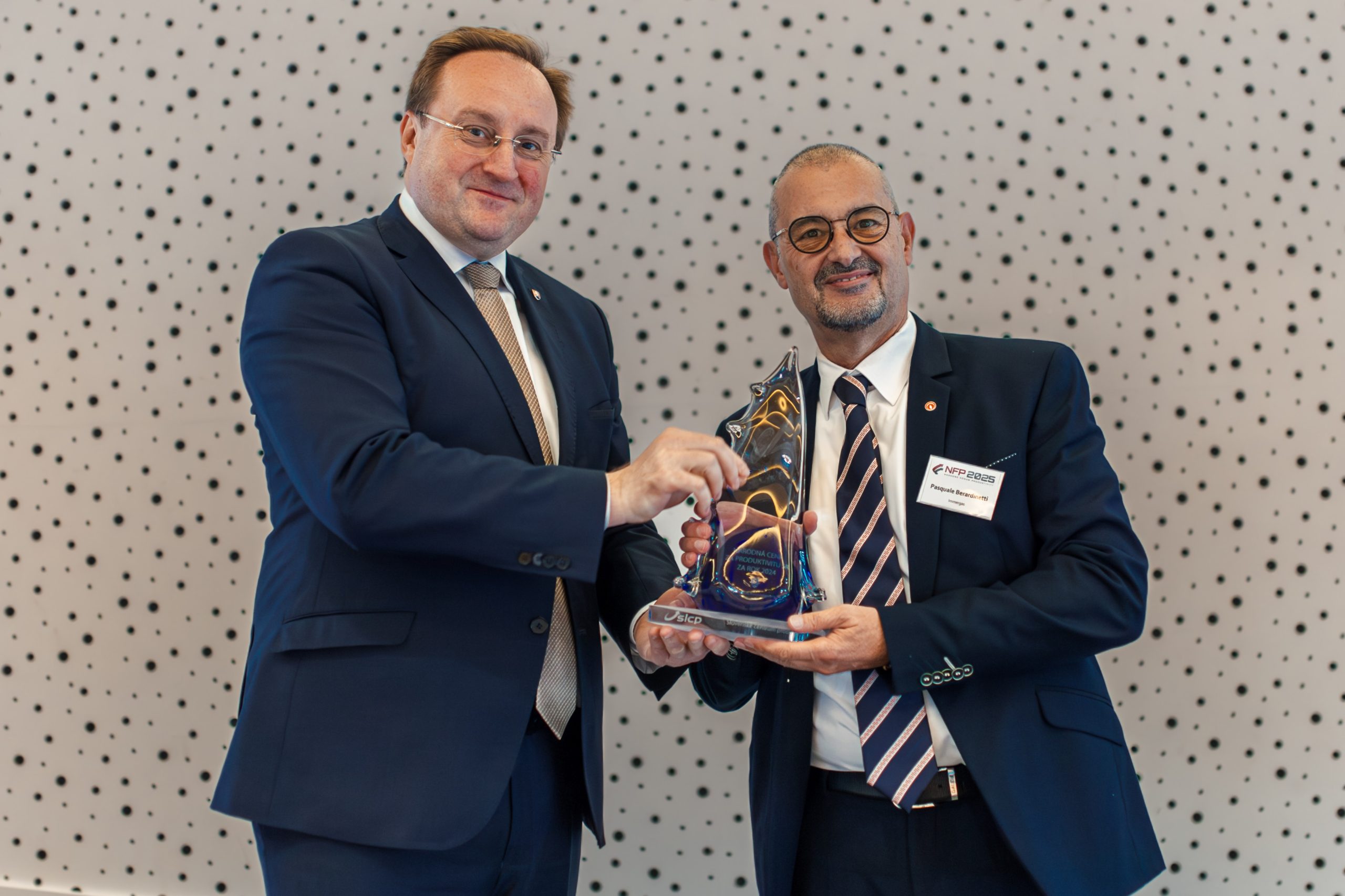 Pasquale Berardinetti (a destra) riceve il premio da Vladimir Šimoňák, Segretario di Stato presso il Ministero dell’Economia della Repubblica Slovacca.