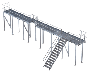 Le piattaforme industriali proposte da MEFA sono piattaforme di lavoro formate da diversi elementi, fra cui gli elementi appartenenti al sistema modulare per carichi pesanti Centum® abbinati ad altri quali ad esempio scale, scale di sicurezza, fermapiedi, parapetti, etc. Ogni piattaforma MEFA è dimensionata nel rispetto delle esigenze del cliente e dei vincoli/caratteristiche dell’area dove dovrà essere installata.