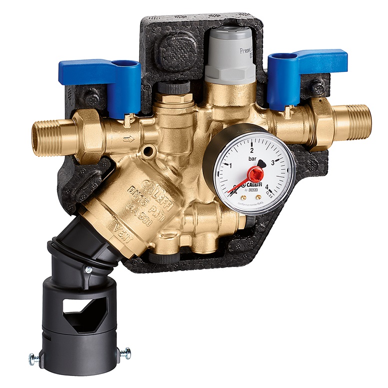 - Gruppo di riempimento e disconnessione serie 580 per mantenere la pressione regolata nel circuito idraulico ed evitare ritorni dell’acqua dell’impianto nella rete dell’acqua sanitaria.