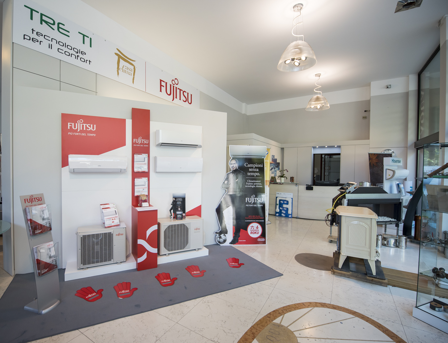 I centri si caratterizzano per un design curato in ogni dettaglio e un personale altamente qualificato, aggiornato sui prodotti e sulle nuove tecnologie, in grado di offrire al cliente la massima professionalità presente sul mercato. Un’attenzione particolare è dedicata all’allestimento del punto vendita, con un welcome kit per un’immagine coordinata con accessori e capi d’abbigliamento personalizzati con il brand Fujitsu, allestimenti modulari curati in ogni minimo dettaglio, insegne, adesivi per automezzi, espositori. Ogni showroom rappresenta un luogo esperienziale dove le unità esposte sono per la maggior parte funzionanti e il cliente può confrontarle tra loro, per comprendere e apprezzare le differenze.