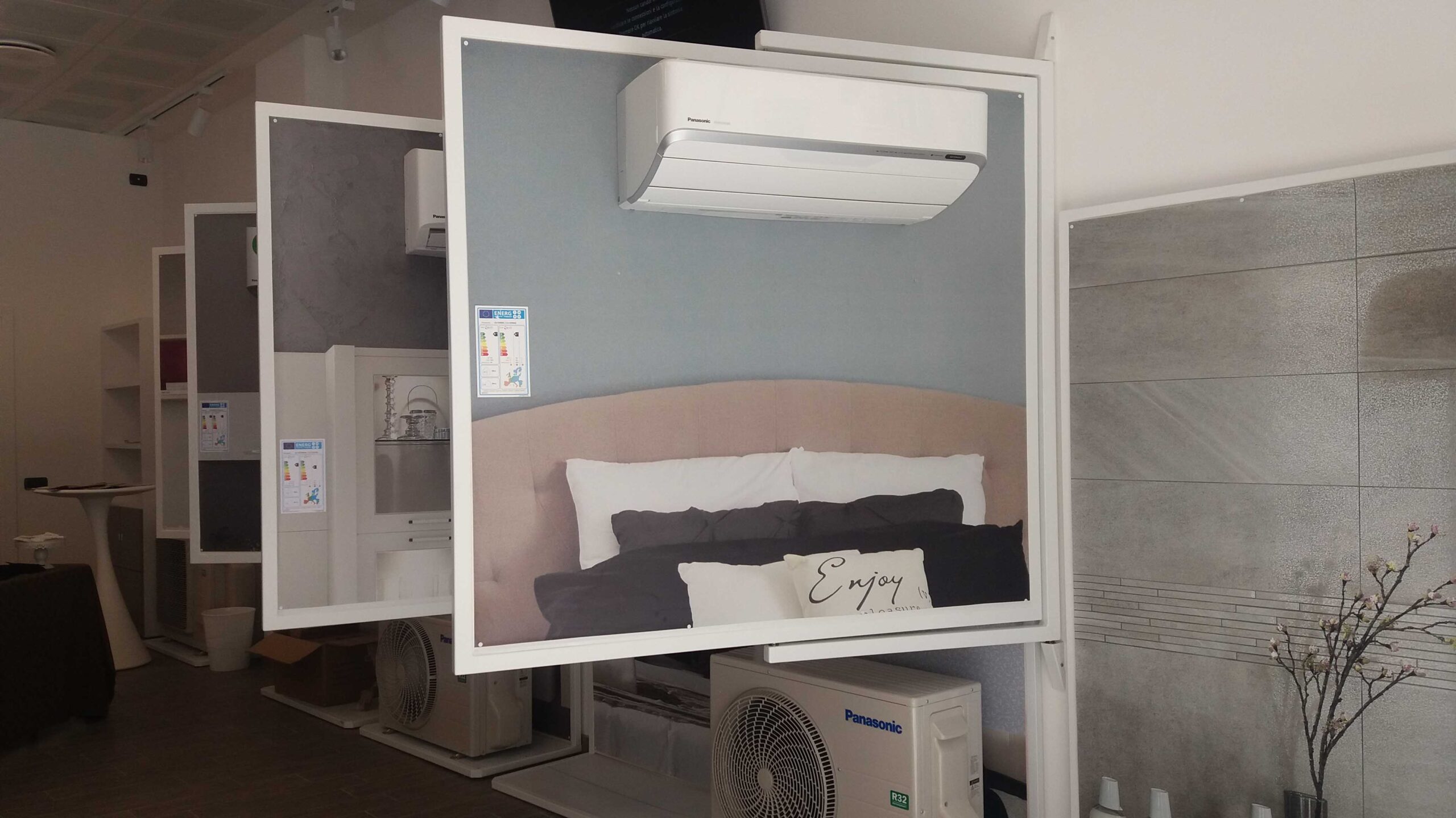 All’interno dello showroom sono stati installati alcuni dei migliori prodotti Panasonic, in particolare i nuovi modelli Etherea Z/XZ con gas R32, caratterizzati da un design sottile ed elegante (il cui modello precedente è già stato premiato con l’IF Design Award 2017) e dalla più avanzata tecnologia che assicura comfort all’utente finale.