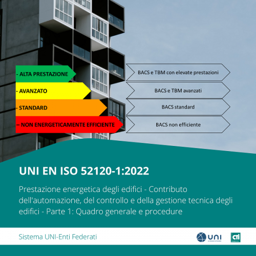 Come segnalato sul sito del CTI, è entrata in vigore lo scorso 4 novembre la norma UNI EN ISO 52120-1:2022, dedicata ai cosiddetti sistemi BACS, dal titolo “Prestazione energetica degli edifici – Contributo dell’automazione, del controllo e della gestione tecnica degli edifici – Parte 1: Quadro generale e procedure”.