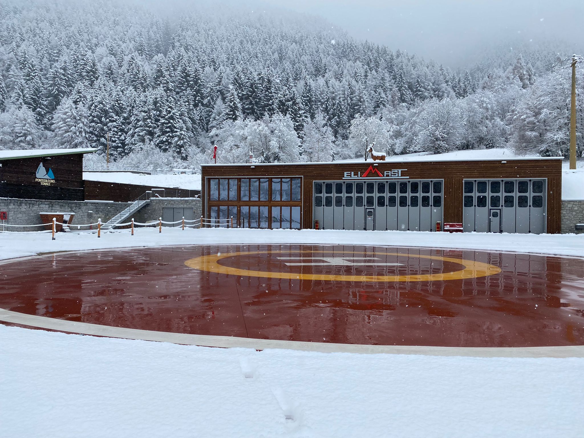La piazzola della nuova base Elimast Helicopter Service a Pontagna di Temù è stata dotata di un moderno sistema di riscaldamento, funzionalità indispensabile per permettere l’atterraggio sicuro degli elicotteri tutto l’anno.