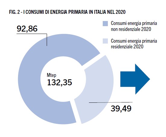 Parte di queste risorse potrebbe (o dovrebbe) arriva­re da un nuovo grande piano di finanziamenti europei, ma non basta, occorre una piani­ficazione attenta e la messa a punto di strumenti di supporto alla riqualificazione energeti­ca degli edifici che oggi non è parte della nostra agenda politica, nonostante il PNIEC abbia rivisto al rialzo i target di riduzione dei consumi annuali di energia finale al 2030 insieme agli obblighi di risparmio annuo. Senza interventi sul patrimonio edilizio – va ricordato – gli obiet­tivi di decarbonizzazione del Paese non saranno mai raggiunti e quindi l’Italia dovrà comunque dotarsi delle risorse necessarie per effettuare quegli investimenti, anche se eventualmente spal­mati su un periodo più lungo».