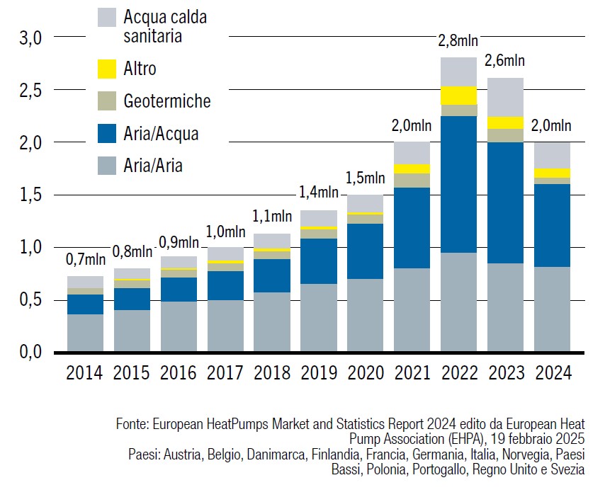 2. Executive Summary – European Heat Pumps Market and Statistics Report 2024, edito da European Heat Pump Association (EHPA), 19 febbraio 2025