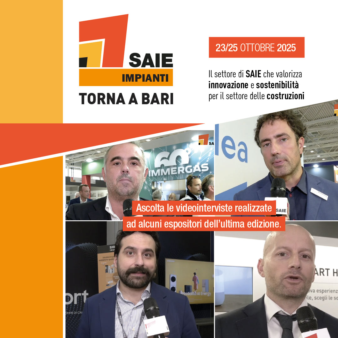 SAIE IMPIANTI, si terrà, nell’ambito di SAIE BARI alla Nuova Fiere del Levante, dal 23 al 25 ottobre 2025.