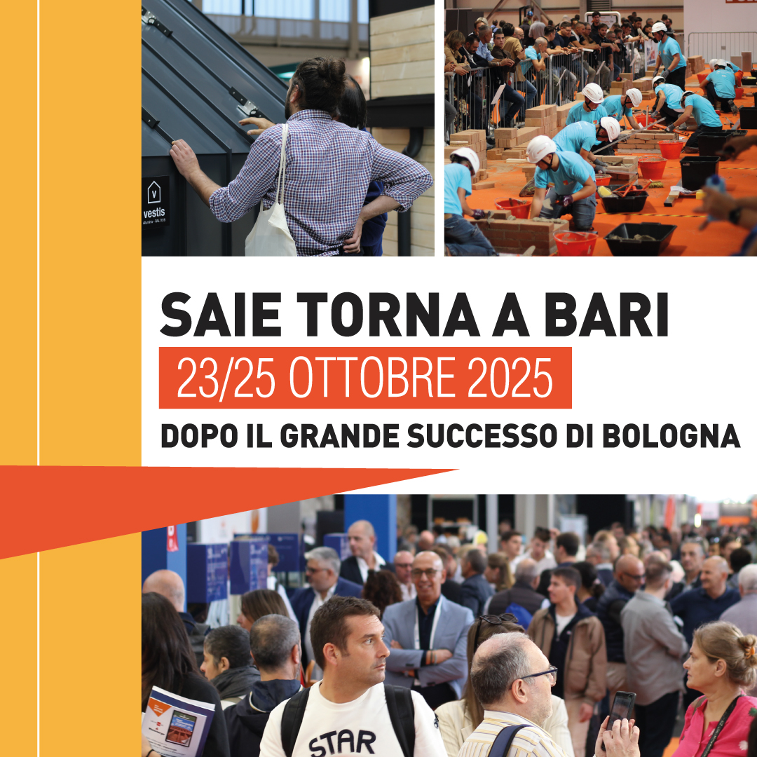 Nel 2025, SAIE tornerà quindi a Bari, dal 23 al 25 ottobre.