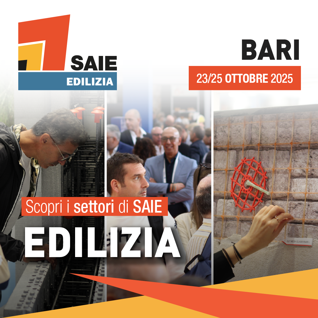SAIE EDILIZIA, nell’ambito di SAIE Bari 2025, è quindi pensata per far incontrare decisori d’acquisto del mercato delle costruzioni e aziende che si occupano di:
