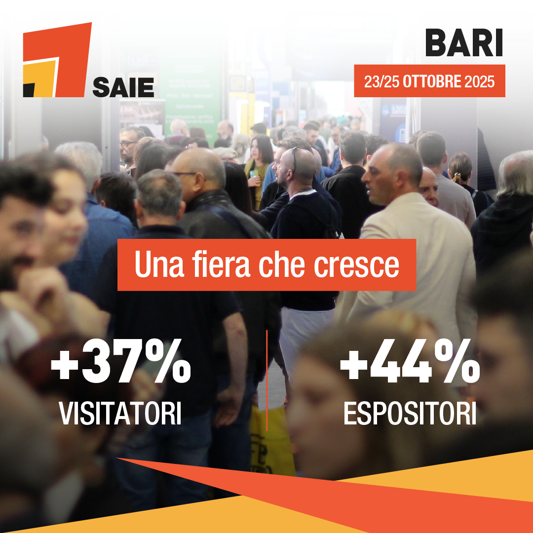 Nelle sue ultime tre edizioni a Bari, SAIE ha registrato una crescita costante: nell’edizione 2023 +37% di visitatori e +44% di espositori, dati che confermano SAIE come la fiera di riferimento fondamentale per lo sviluppo commerciale del comparto sul territorio.