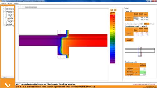 IRIS permette di visualizzare e stampare l’esito della simulazione di calcolo dei singoli ponti termici o dell’intero progetto, sia in forma grafica per evidenziare la distribuzione della temperatura, del flusso e della concentrazione di umidità relativa, sia in forma tabellare con un riepilogo delle verifiche di rischio di condensazione superficiale, di rischio muffa e del calcolo della trasmittanza lineica.