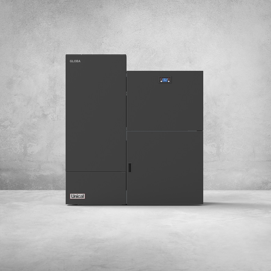caldaia a pelletGloba è la nuova caldaia a pellet ad alta efficienza con produzione A.C.S. presentata da UNICAL (Casteldario, MN). Una caldaia super compatta “all in one”, con soli 63 cm di profondità e classe energetica 5 Stelle, conforme ai regolamenti più restrittivi in materia di emissioni.