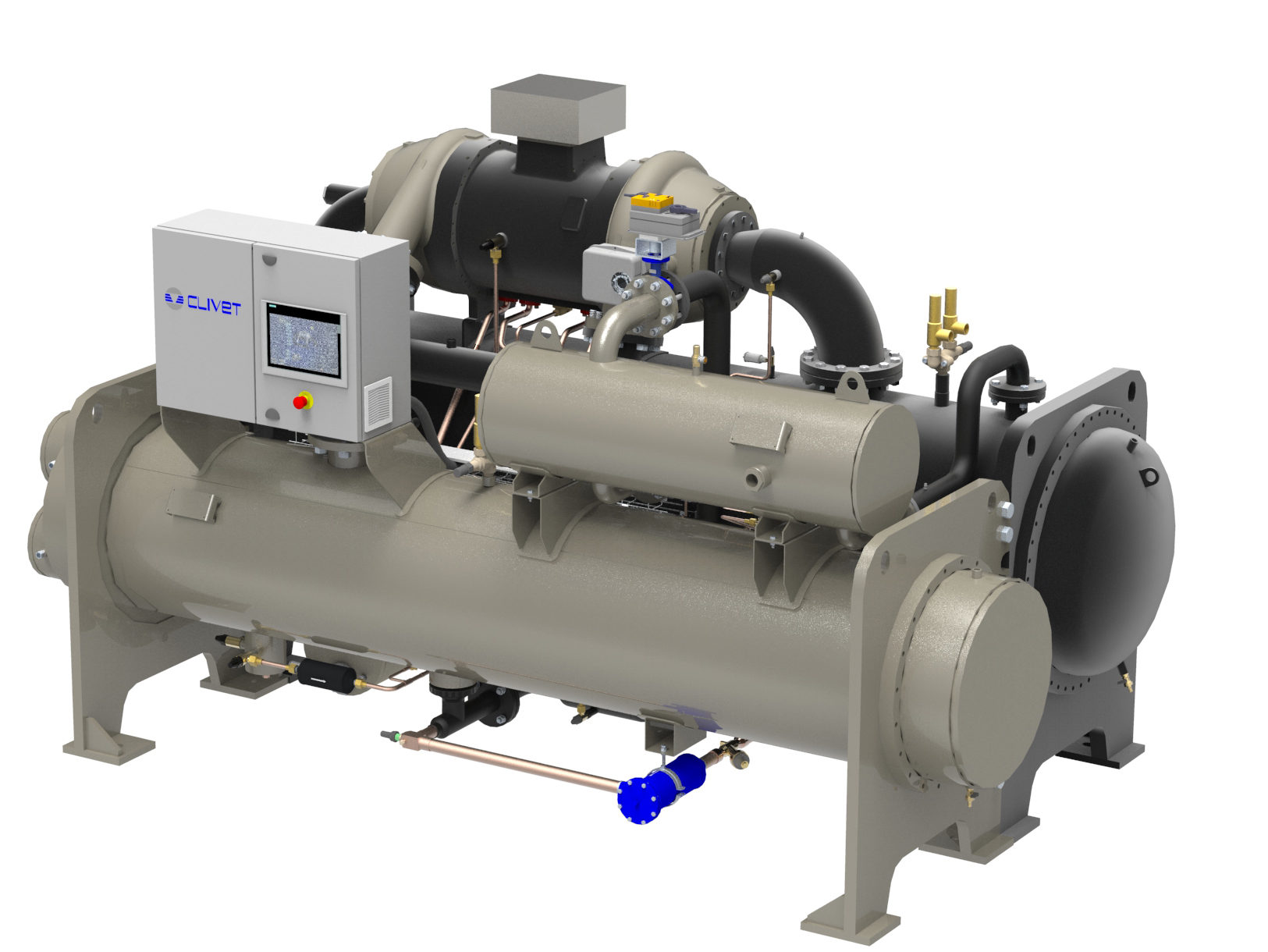 WCH-i di Clivet (Feltre, BL) è il nuovo refrigeratore di liquido condensato ad acqua per installazione interna con refrigerante R-134a, dotato di compressore centrifugo a giranti contrapposte e regolazione ad inverter.