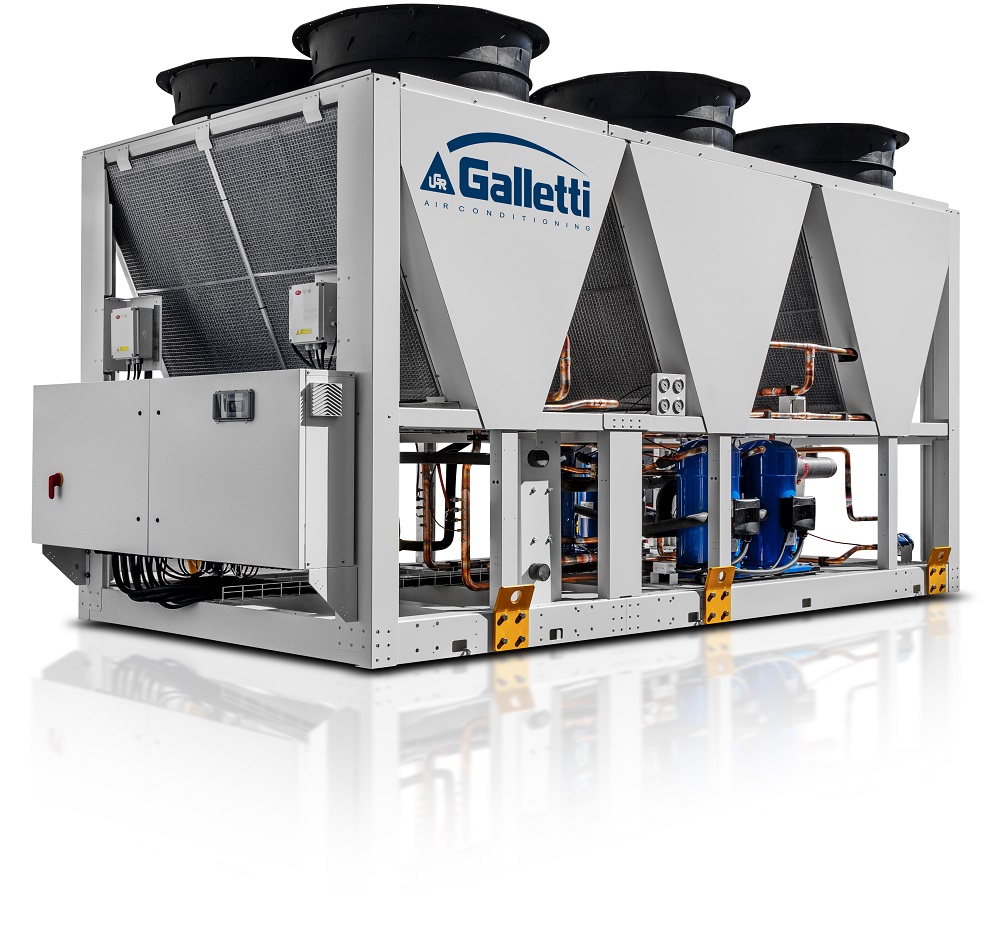 La gamma Galletti VLS di unità aria-acqua ad elevata efficienza stagionale con refrigerante a basso GWP, si compone di 13 modelli – completamente configurabili selezionando versioni e opzioni – con potenze in raffrescamento che vanno da 150 a 590 kW, in versione solo freddo o pompa di calore reversibile.