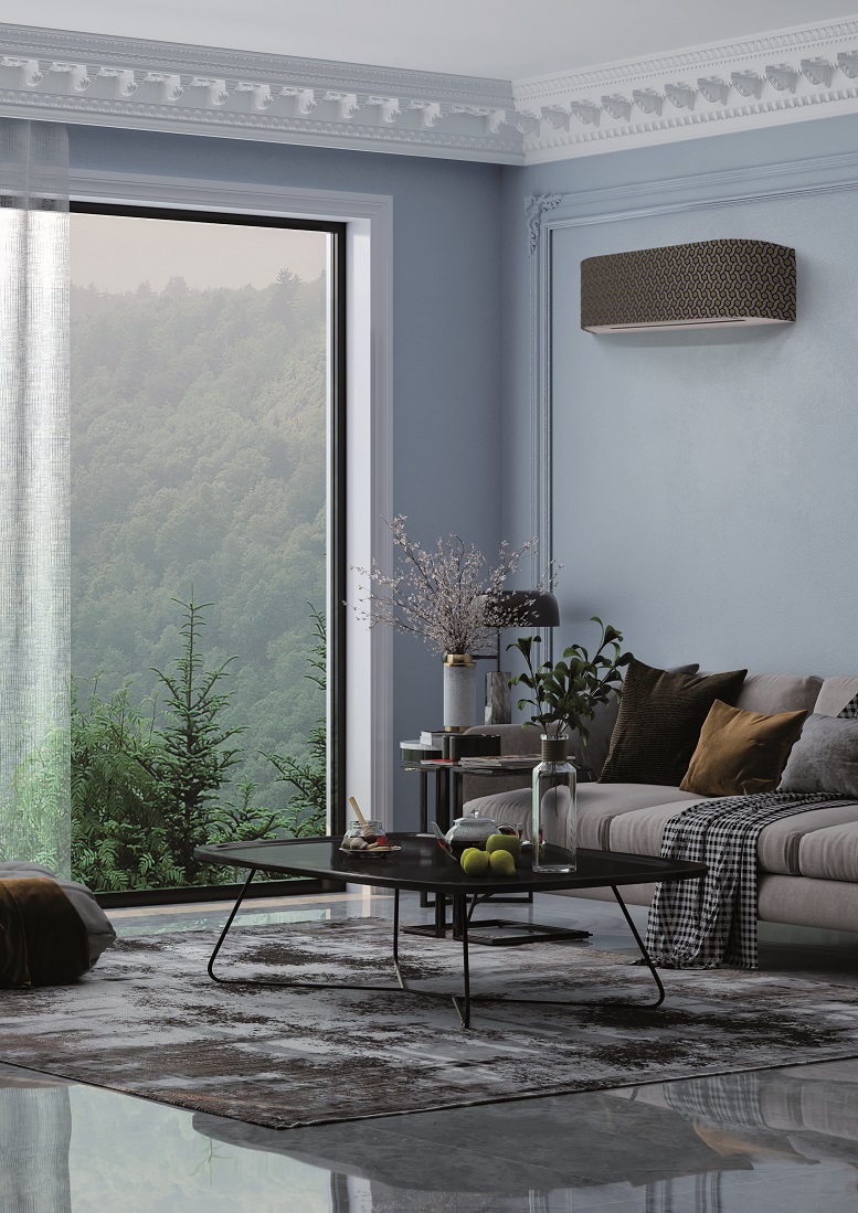 Con la sua forma unica, leggermente arrotondata, questa innovativa unità di climatizzazione Inverter è caratterizzata da un rivestimento in tessuto disponibile in un’ampia gamma di tessuti esclusivi Rubelli, per offrire numerose possibilità di personalizzazione, integrandosi facilmente con gli altri tessuti presenti nelle stanze, come quelli di divani, tappeti, tende e poltrone.
