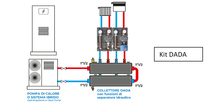 E la soluzione di impianto tipo con collettore DADA e con il “Kit DADA” che consente di evitare l’installazione del separatore idraulico: