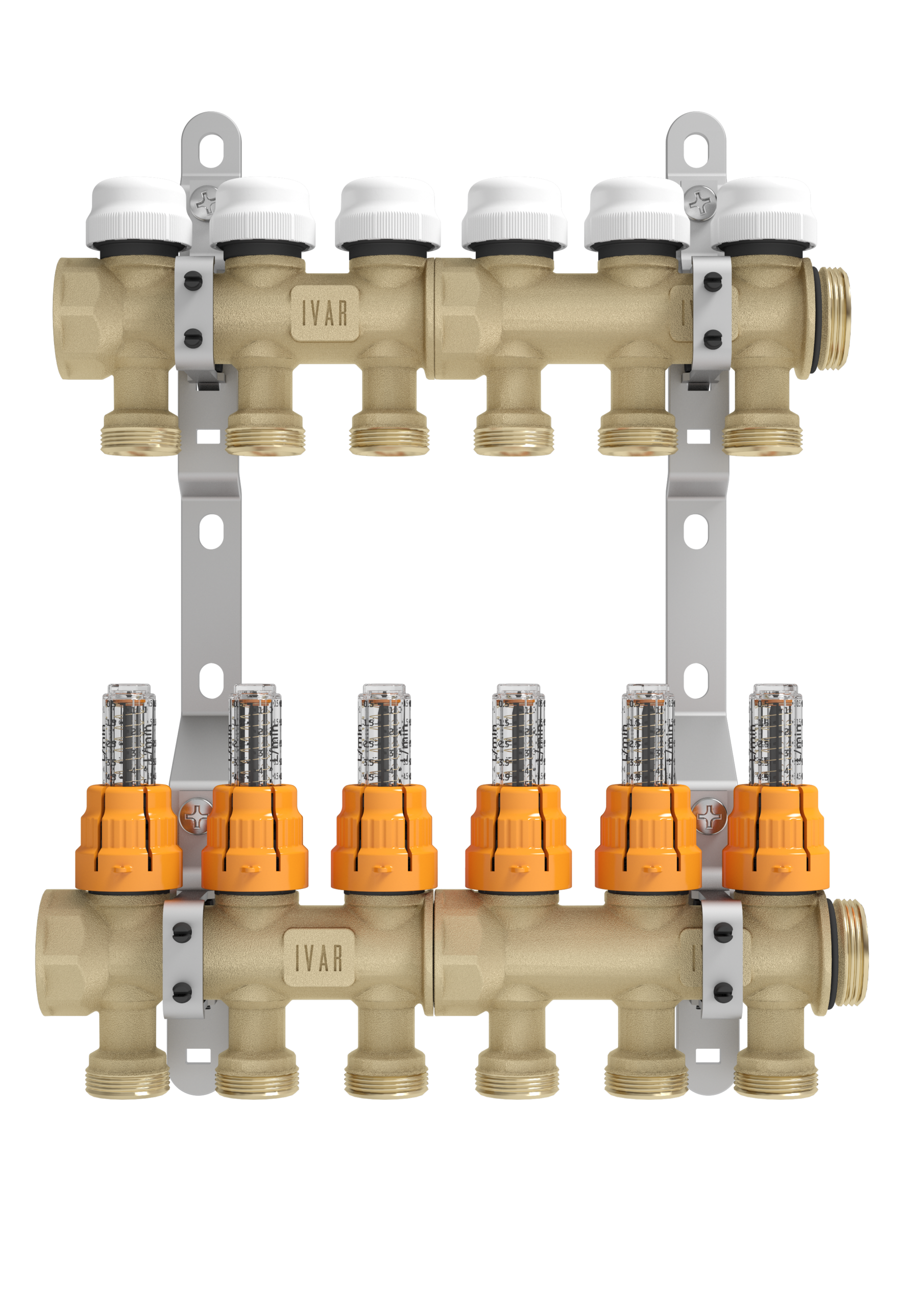 Le derivazioni dei collettori di mandata sono fornite di misuratori/regolatori di portata fluxer, un dispositivo fondamentale per il bilanciamento e la visualizzazione della portata sul singolo circuito. Il fluxer è costituito da un vetrino sostituibile anche ad impianto funzionante ed offre la possibilità di intercettazione e memoria di posizione.