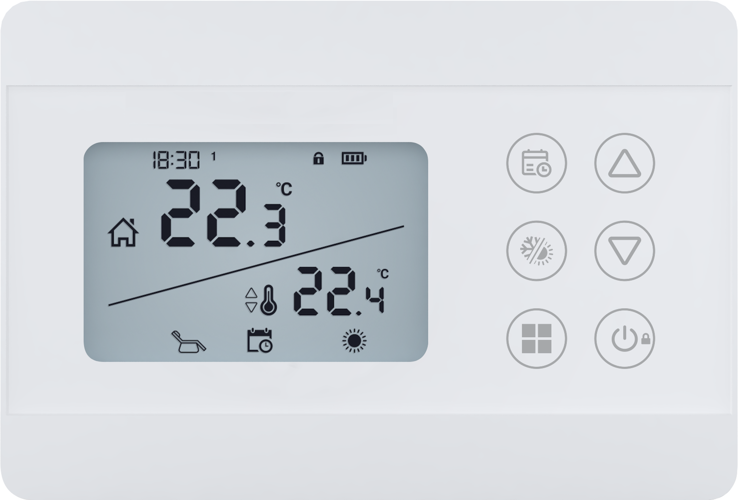 Il nuovo cronotermostato che include la funzione di modulazione TPI, che consente di raggiungere la classe ErP IV, è dotato di funzione Antigelo e della possibilità di calibrare la temperatura con un range di ±8°C.