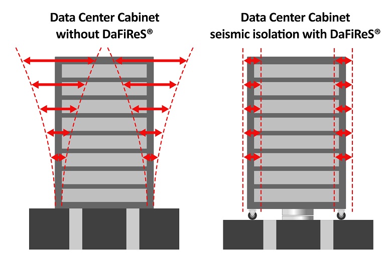 L’ingegneria civile moderna ha sviluppato validissime tecniche di progettazione con dispositivi antisismici per le costruzioni, ma il mercato è carente di efficaci dispositivi a protezione di macchine, impianti tecnologici e altri sistemi definiti “non strutturali”. DAFiReS® Dispositivo Antivibrante di Fissaggio a Resistenza Sismica è un brevetto per invenzione depositato da Pantecnica® (concesso in data 2/6/2021), ideato per proteggere in caso di evento sismico l’integrità di qualunque macchinario e impianto non strutturale, riducendo le accelerazioni sul sistema sospeso, impedendo il collasso delle molle di supporto, favorendo un rapido ritorno in servizio dello stesso, oltre ad essere facilmente sostituito dopo l’evento sismico.