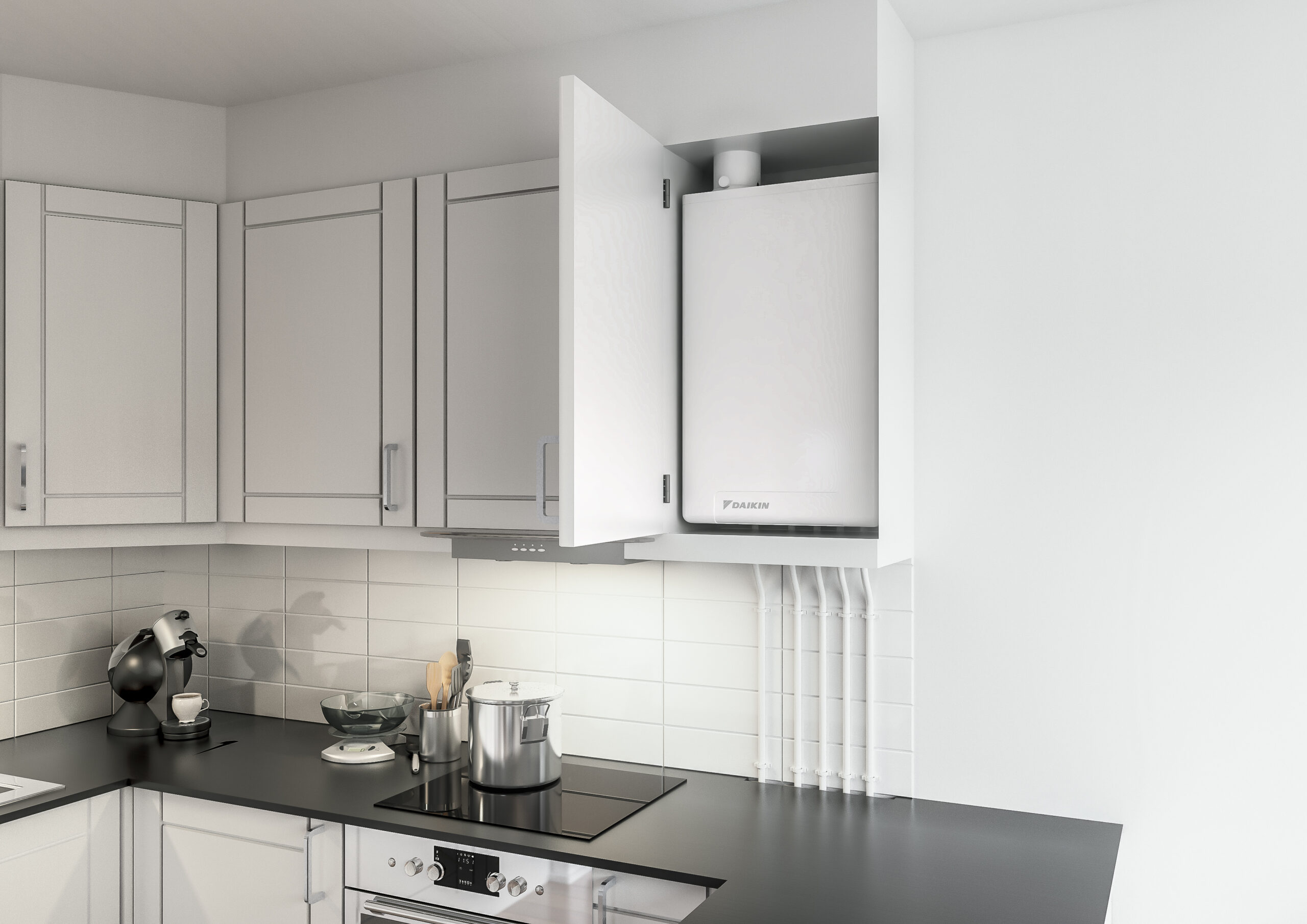 La pompa di calore Altherma H Hybrid di Daikin, abbinata alla caldaia a condensazione Daikin, crea il sistema ibrido perfetto:
