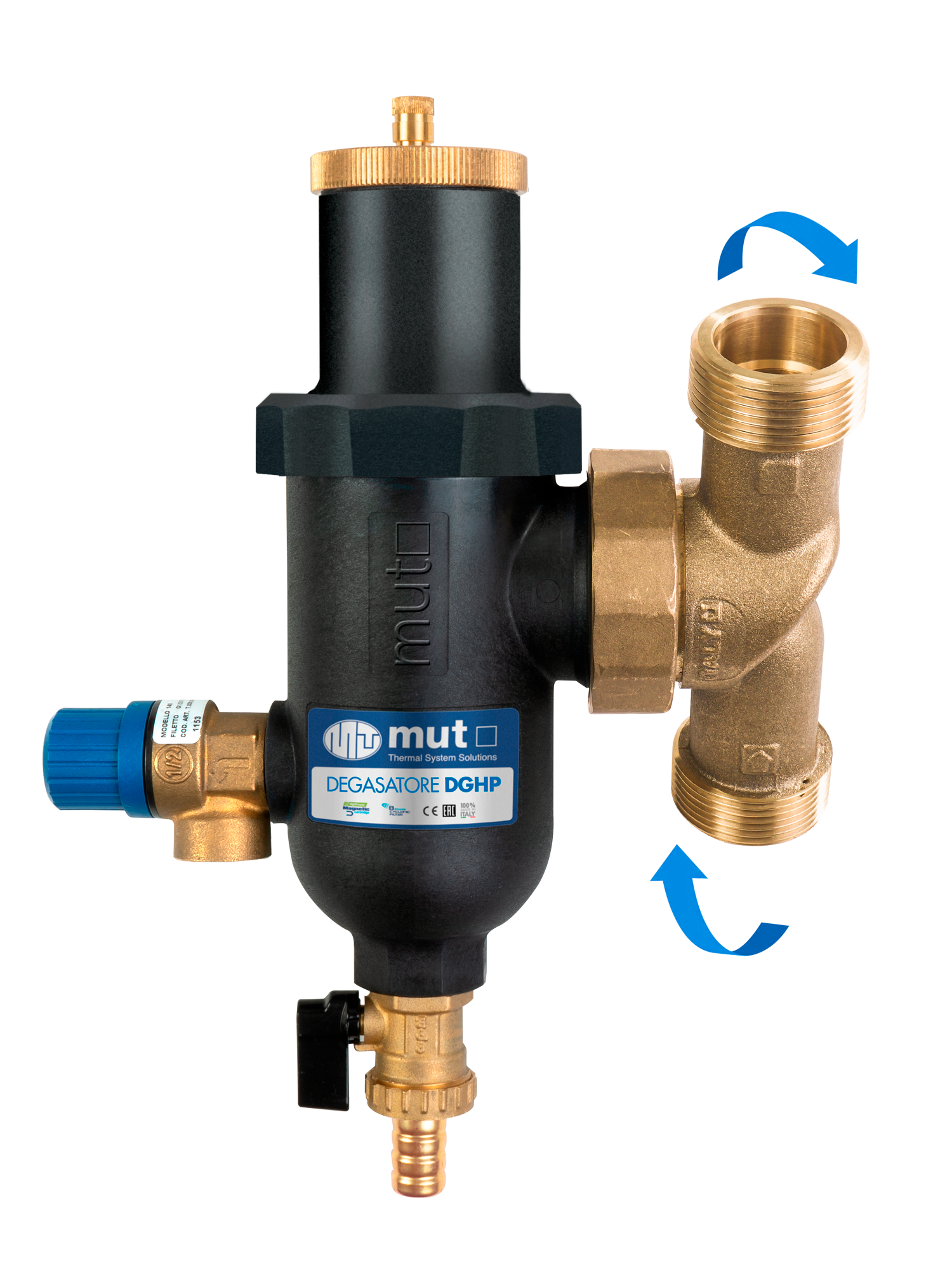 Facile da installare e praticamente privo di manutenzione ordinaria, DG HP consente lo scarico periodico delle impurità direttamente dal rubinetto inferiore, operazione possibile anche con impianto in funzione. La soluzione MUT DG HP assicura così impianti più efficienti, longevi e silenziosi, migliorando concretamente la resa complessiva dei moderni sistemi idraulici ibridi e a pompa di calore.
