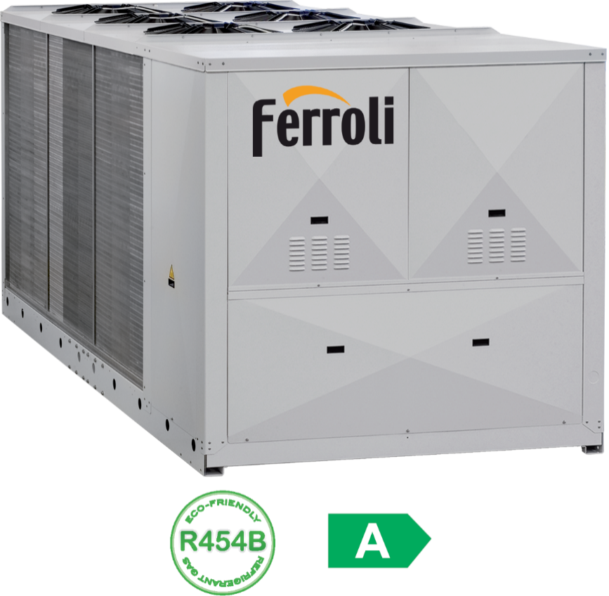 le gamme tradizionali con gas refrigerante R410A fino a 400kW, disponibili sia con compressori che con ventilatori in versione inverter.