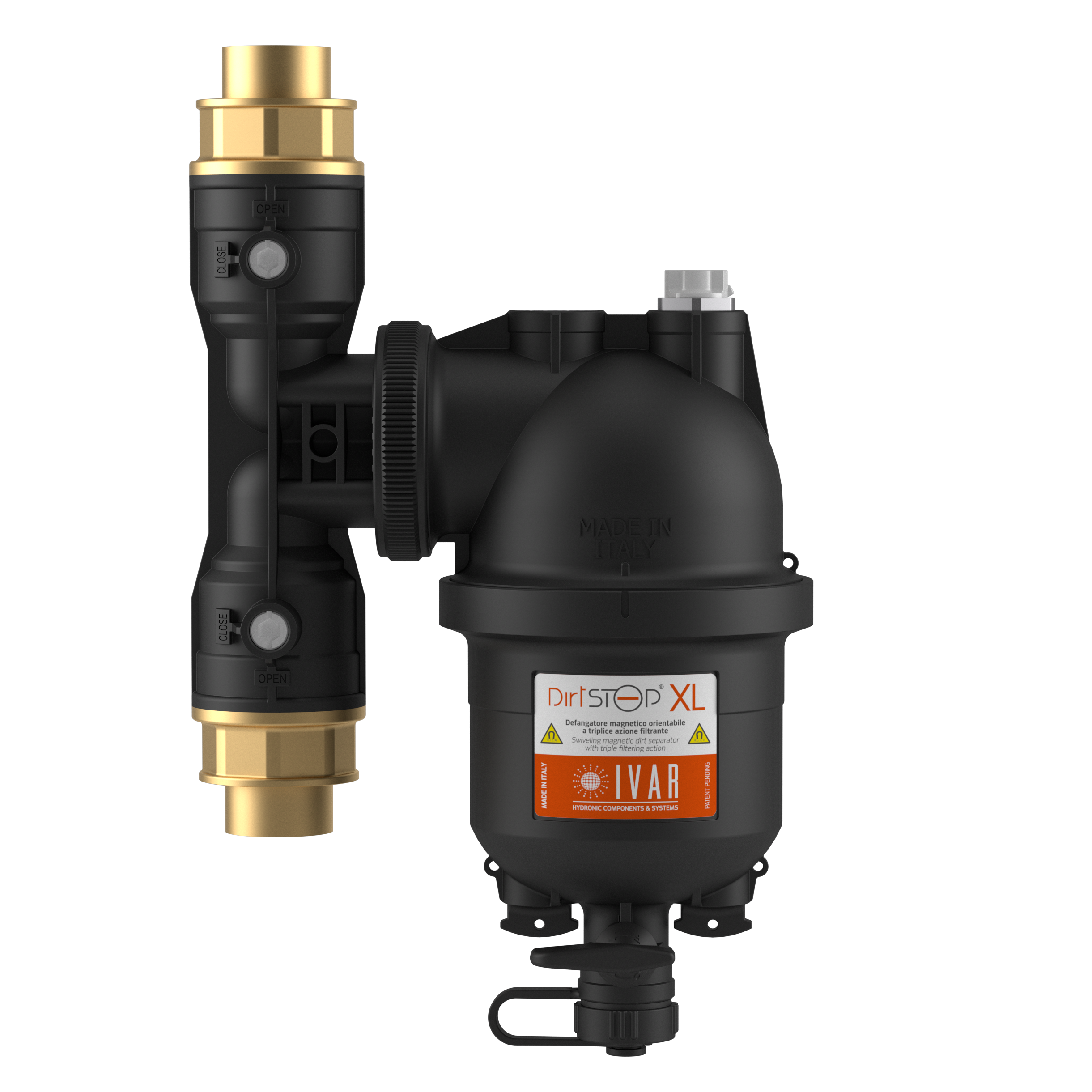 La gamma di prodotti IVAR per il trattamento acque contempla inoltre il defangatore magnetico orientabile a triplice azione filtrante DIRTSTOP® XL, la soluzione ideale in impianti con portate elevate.