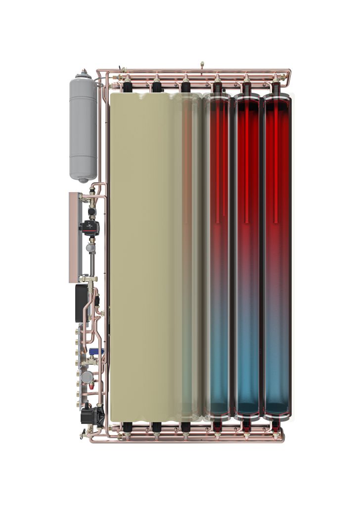 Il modulo multi-energia è stato progettato per abbinamento a sistemi di riscaldamento rinnovabili, è ideale su impianti a pavimento radiante con pompa di calore, funge da serbatoio inerziale ed elimina il problema della contemporaneità di produzione riscaldamento e ACS, può essere integrato da una fonte solare.