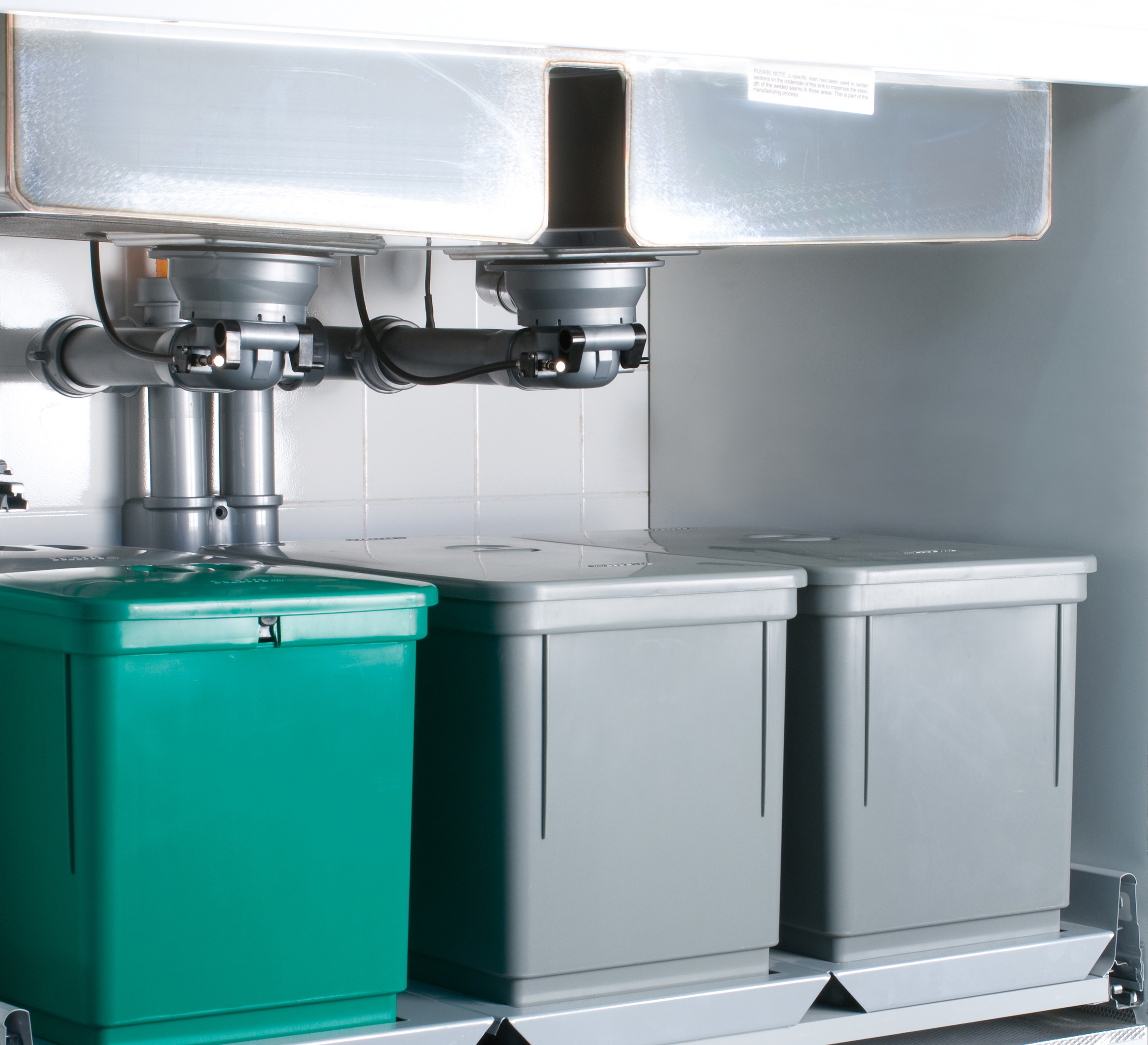 Per sfruttare al massimo lo spazio del sottolavello, è consigliabile l’abbinamento con il sifone Spazio 2NT New Technology, che, aderendo perfettamente alla parete di fondo, recupera ulteriore spazio nel sottolavello.