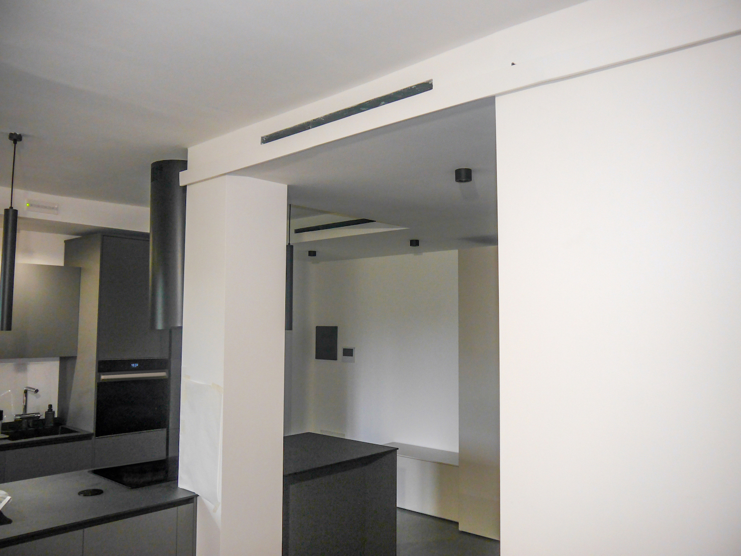Non meno importante la tecnologia nanoeTM X presente di serie all’interno dell’unità interna canalizzata, che consente di agire sulla qualità dell’aria interna inibendo diversi virus e batteri, allergeni, pollini e sostanze inquinanti.Grazie alle dimensioni compatte, l’unità interna si adatta a qualsiasi stile e ambiente, integrandosi quindi perfettamente anche in un appartamento di 90mq: in questo caso, l’unità interna canalizzata è stata inserita in un controsoffitto creato ad hoc, nel corridoio tra la zona giorno e notte.