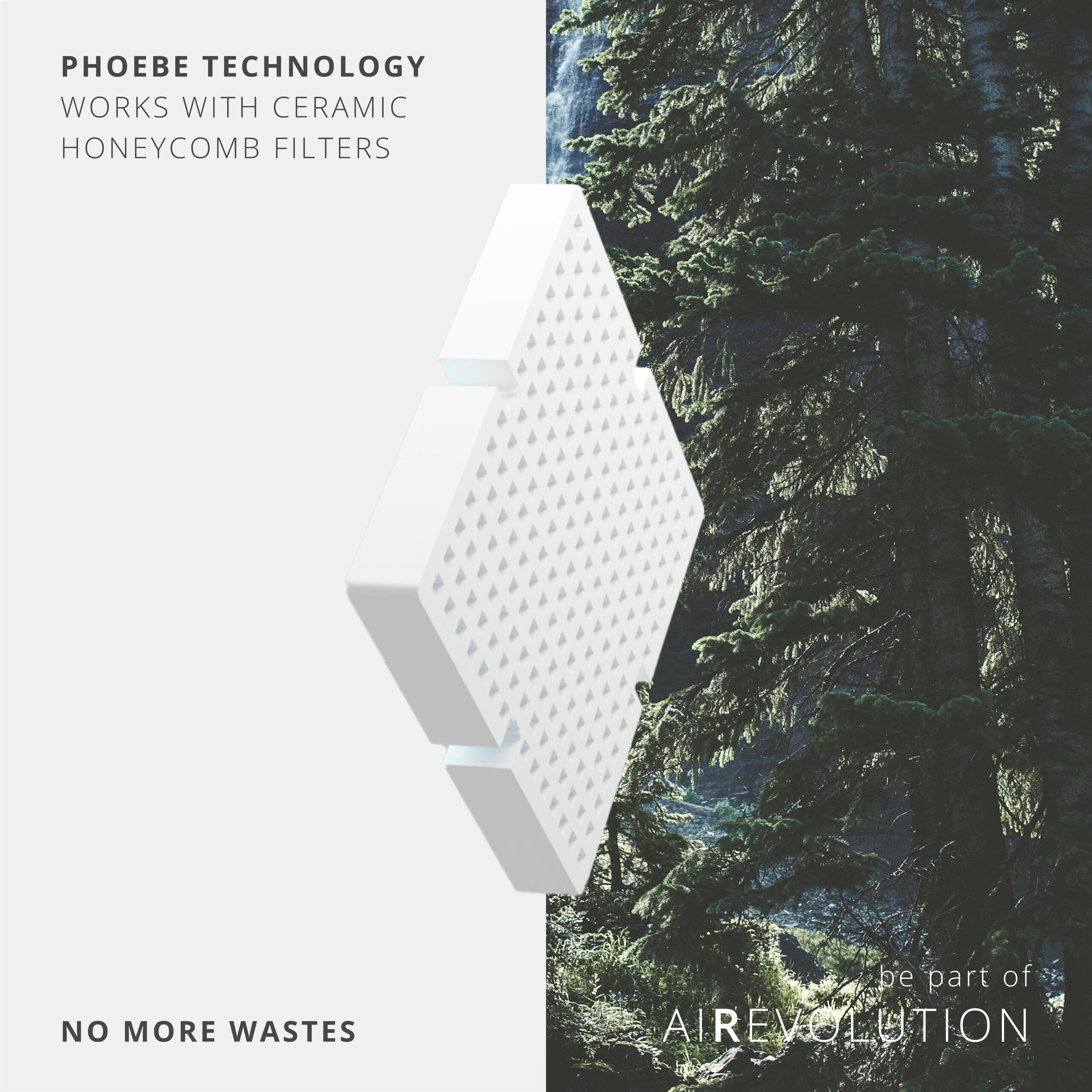 Grazie alla sua tecnologia effettiva di purificazione dell’aria, basata su filtri ceramici, per sistemi HVAC o stand alone, basata sulla fotocatalisi attivata da luce LED, Phoebe attacca le particelle, rompendo I legami chimici e distruggendoli, invece di bloccarli come avviene con I filtri standard (carboni attivi ed HEPA)