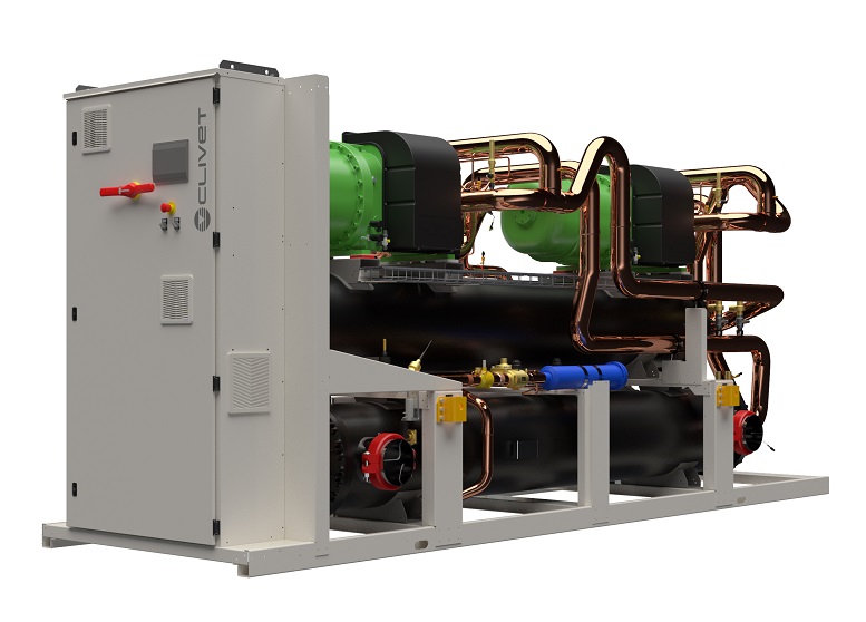 Clivet (Feltre, BL) presenta SCREWLINE4-i (WiDHN-KSL1 PL), la nuova pompa di calore polivalente condensata ad acqua per installazione interna, da 440 e 945 kW, con refrigerante R513A e compressori a vite con regolazione ad inverter.