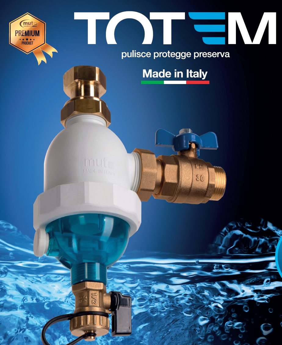 Totem di MUT di Montecchio Maggiore (VI) è un kit pensato per la protezione degli impianti idronici aventi la pompa di calore come generatore termico. È stato sviluppato con riferimento alla norma UNI 8065:2019. Totem è infatti filtro, defangatore magnetico e condizionante chimico con azione antincrostante, anticorrosivo e antialga ed è dotato di serie di valvola d’intercettazione a sfera (in ingresso) e di valvola di non ritorno (in uscita).